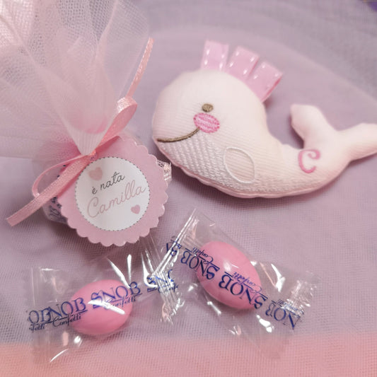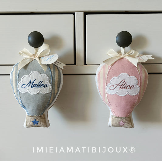 Bomboniera a forma di mongolfiera con tasca porta confetti