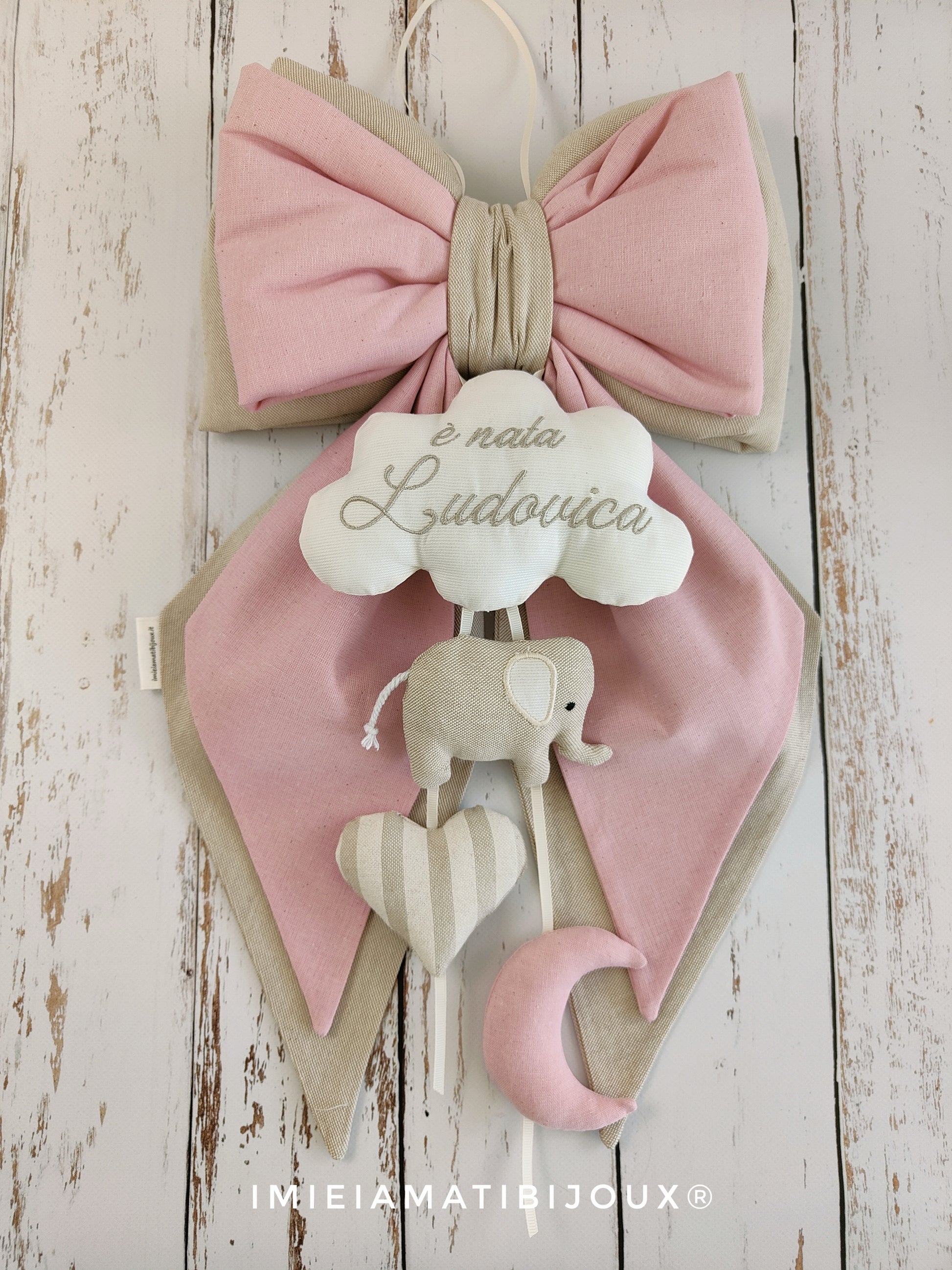 Doppio fiocco nascita 4 pendenti forma a scelta